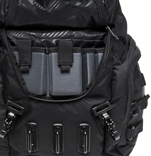 The Oakley Kitchen Sink Backpack is a durable and versatile pack designed to carry all your essentials in style. It features a large main compartment with a padded sleeve that can hold up to a 17-inch laptop, a front organizer panel for easy access to smaller items, and multiple exterior pockets for additional storage. The heavy-duty construction and abrasion-resistant fabric make it ideal for everyday use or travel. The padded shoulder straps and adjustable waist belt provide comfortable carrying support, while the sleek and stealth black design adds a modern touch. With its ample storage and rugged design, the Oakley Kitchen Sink Backpack is the perfect companion for all your adventures.,